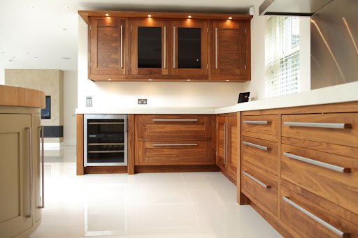 Grey Tinted Glass Works Well With The Walnut Artistic Kitchen Kitchen Furniture Design Walnut Kitchen
